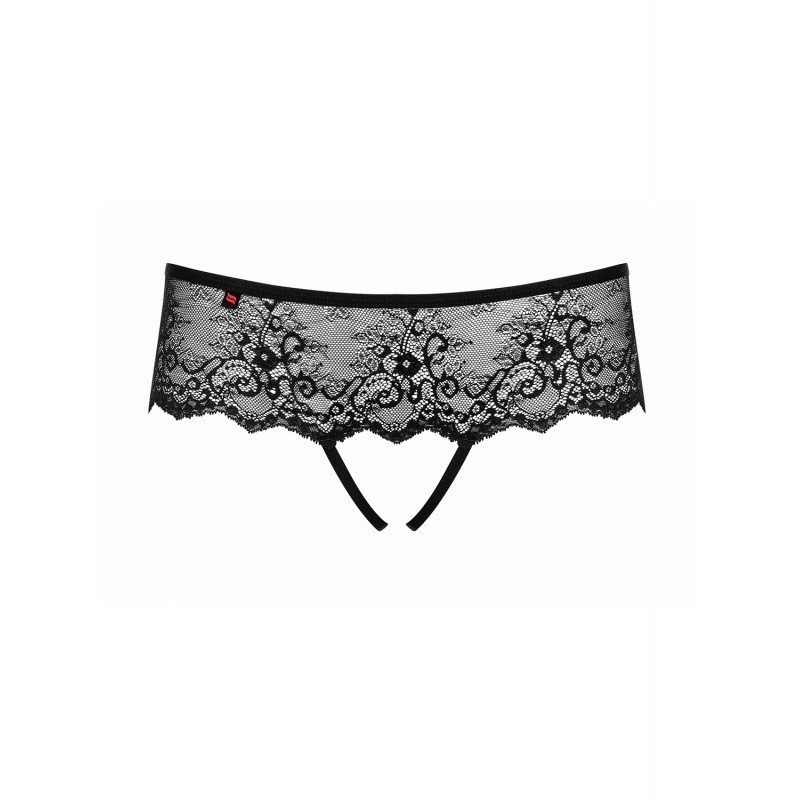Découvrez ce string ouvert à l'entrejambre en dentelle de la marque Obsessive orné de jolies ouvertures et noeuds sur le devant. Une pièce de lingerie qui émoustillera les sens de votre partenaire...