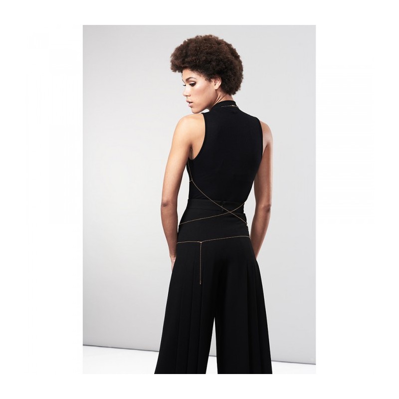 Des chaines corporelles en forme de soutien-gorge à porter sur une tenue sobre, de la lingerie ou à même le corps tout simplement.