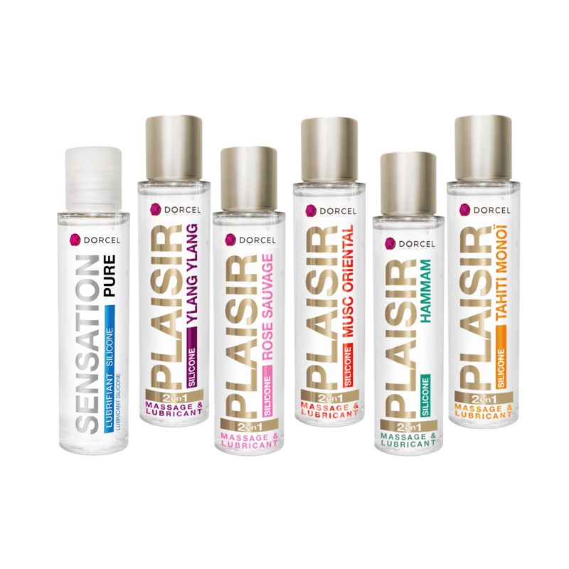 La gamme PLAISIR de MARC DORCEL est composée de 5 gels de massage et lubrifiants pour un double usage en un seul flacon !